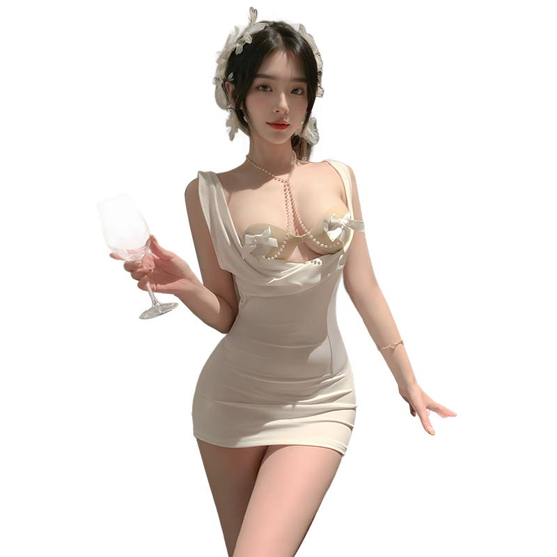 Venus Style Bodycon Mini Dress for Women - Draped Cowl Neck with Decorative Bra Chain & Open Back